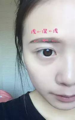 用眉粉填滿整個眉毛。中間深、兩邊淺會,比較自然。所以先涂中間,用余下的粉涂兩邊