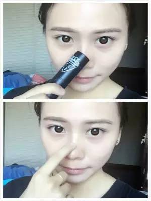2.然后用高光棒在鼻梁位置畫一下,再用手指把畫上的高光部分涂抹暈染開,這樣會非常自然。高鼻梁立體五官就這樣輕松呈現(xiàn)拉~~