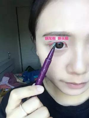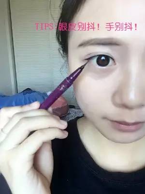 1.我建議剛學(xué)畫眼線的童鞋,使用液體眼線筆。畫眼線首先在眼頭、眼中、眼尾各畫上一筆,定好每個位置眼線的粗細(xì)。一般來說都是眼頭細(xì),眼尾粗。