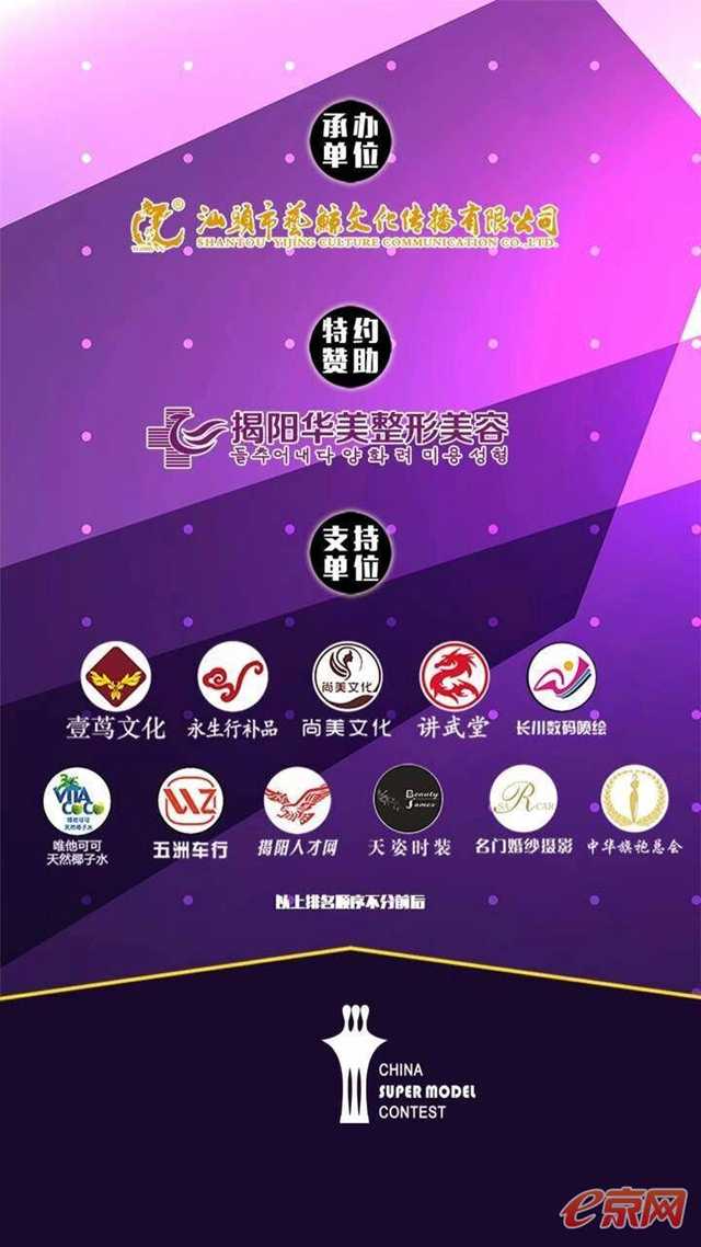 支持單位:揭陽人才網(wǎng)-雄鷹、汕頭市壹蔦文化傳播有限公司、汕頭市永生行補(bǔ)品、尚美文化傳播有限公司、講武堂、中華旗袍總會、汕頭市長川數(shù)碼噴繪、維他可可天然椰子水、汕頭五洲車行、揭陽名門婚紗攝影、潮州天姿時裝有限公司(以上支持單位排名順序不分先后)